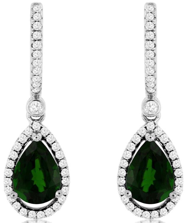 2.72CT DIAMOND & AAA GREEN GARNET 14KT WHITE GOLD TEAR DROP HANGING EARRINGS