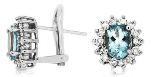 2CT DIAMOND & AAA AQUAMARINE 14K WHITE GOLD OVAL FLOWER CLIP ON HANGING EARRINGS
