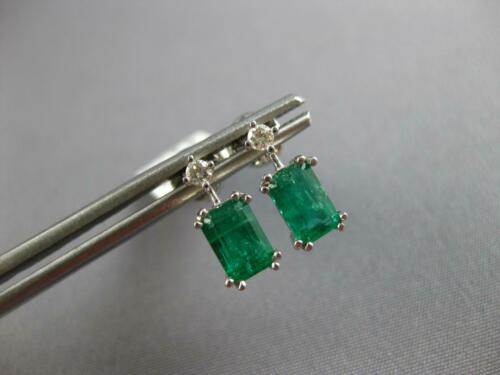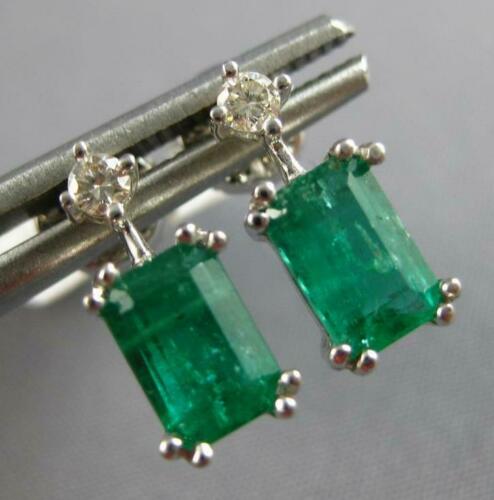 18KT WHITE GOLD STUD HANGING EARRINGS. 3D CLASSIC DESIGN. ROUND DIAMONDS ARE F/G COLOR, VVS-VS CLARITY .09 CARATS. AAA BAGUETTE EMERALDS ARE 1.90 CARATS. EMERALDS MEASURE 6.5mm X 4.5mm. EARRINGS MEASURE 11.5mm X 4.5mm. WRITTEN APPRAISAL AVAILABLE. COMES IN A PRESENTABLE GIFT BOX.