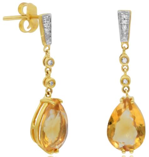 3.21CT DIAMOND & AAA CITRINE 14KT YELLOW GOLD 3D PEAR SHAPE & ROUND FUN EARRINGS