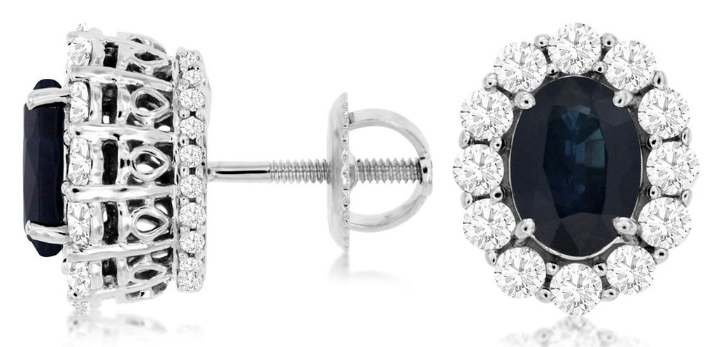 3.0CT DIAMOND & AAA SAPPHIRE 14KT WHITE GOLD 3D OVAL & ROUND SCREWBACK EARRINGS