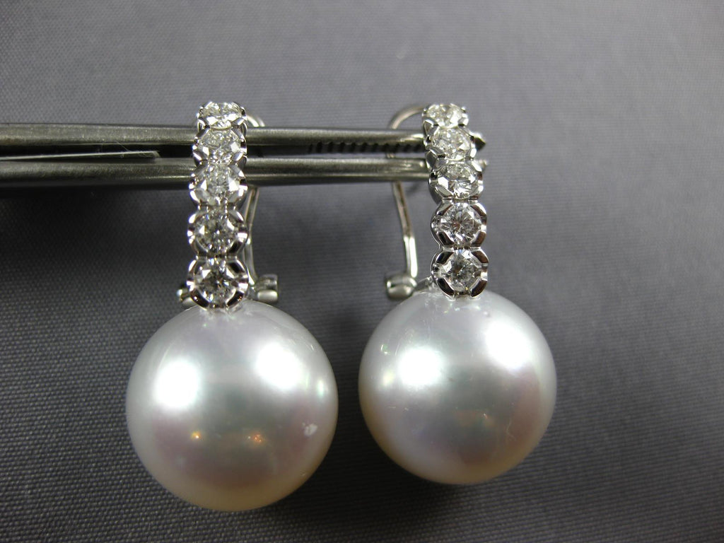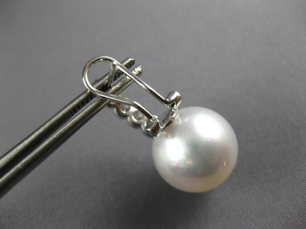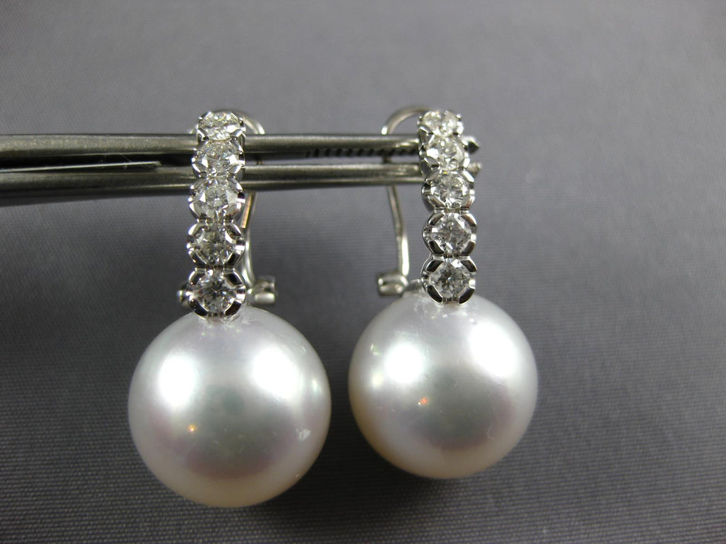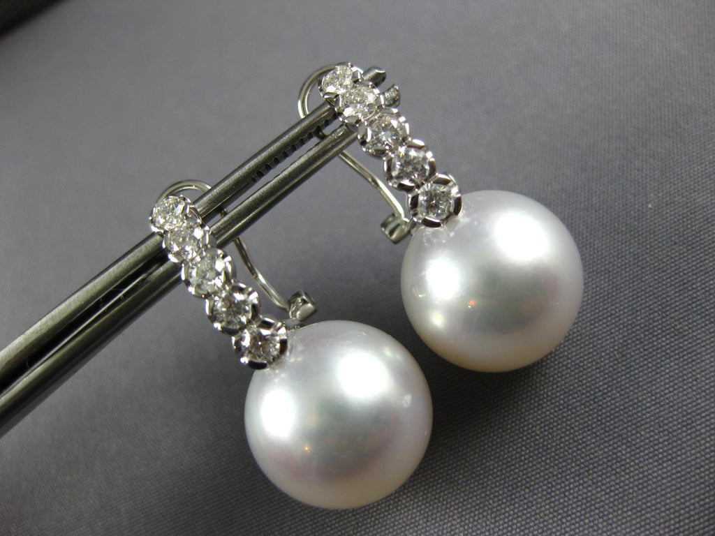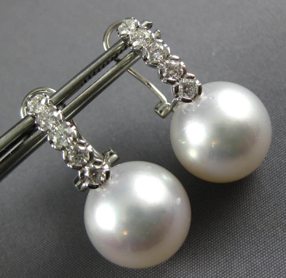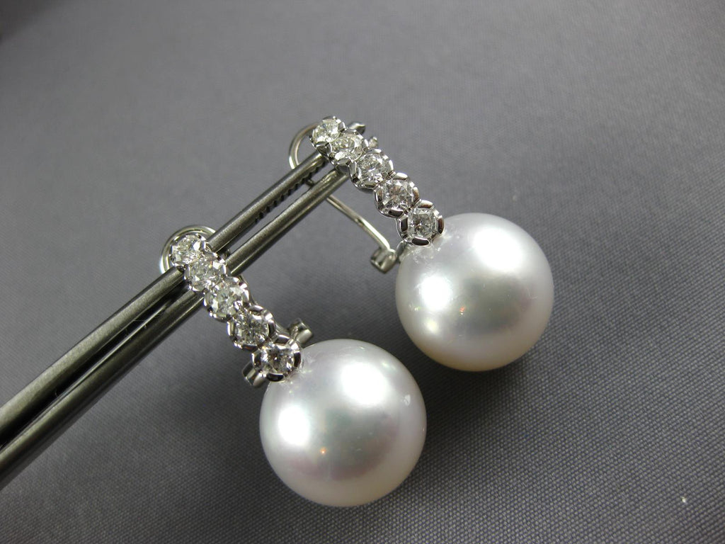 18KT WHITE GOLD CLIP ON HANGING EARRINGS. 3D CLASSIC DESIGN. DIAMONDS ARE F/G COLOR, VSSI CLARITY .73 CARATS. FEATURES AAA SOUTH SEA PEARL. MEASURES 26.5mm X 12.5mm. WRITTEN APPRAISAL AVAILABLE. COMES IN A PRESENTABLE GIFT BOX.