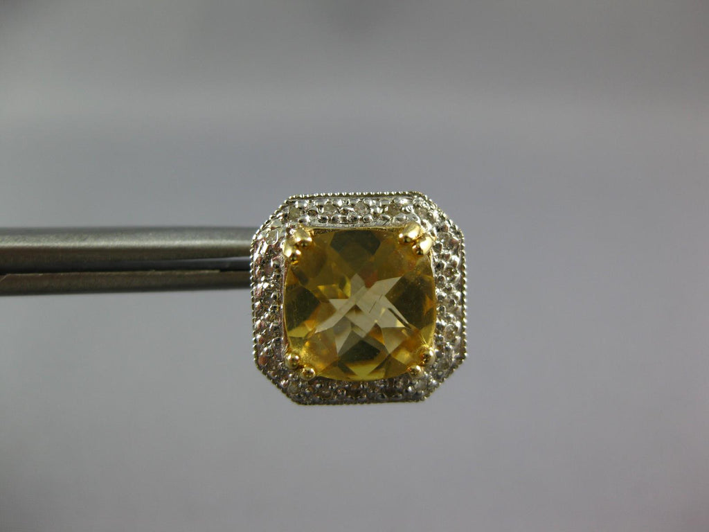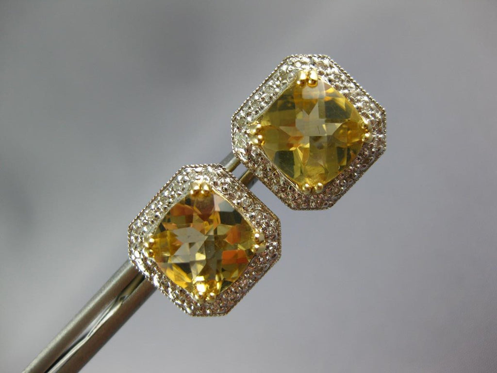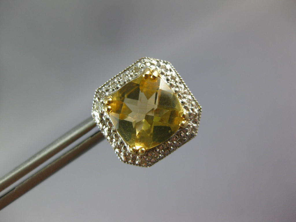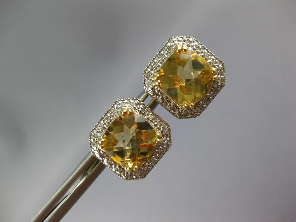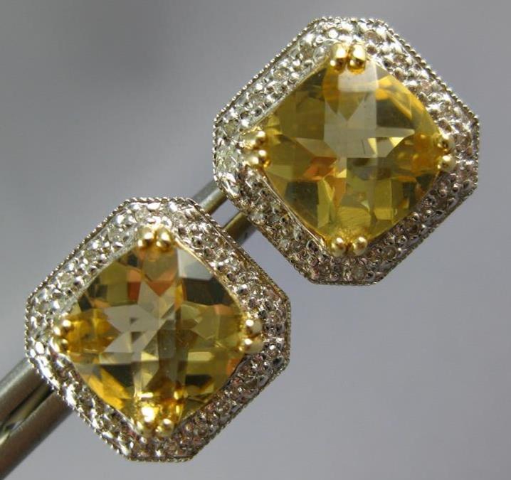 .53CT DIAMOND & AAA YELLOW TOPAZ 14KT 2 TONE GOLD CUSHION FILIGREE STUD EARRINGS