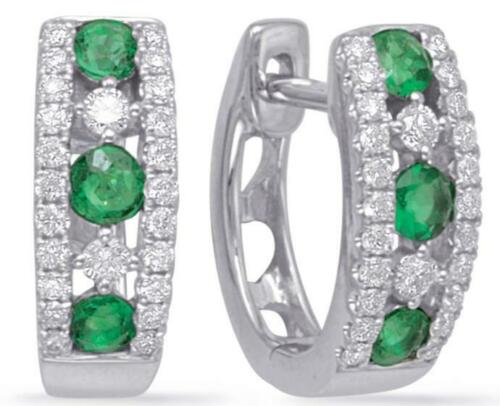 .56CT DIAMOND & AAA EMERALD 14K WHITE GOLD 5 STONE 3 ROW CLASSIC HUGGIE EARRINGS