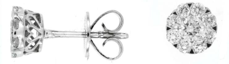 14KT WHITE GOLD STUD EARRINGS. 3D CLUSTER INVISIBLE FLOWER MULTI HEART DESIGN. DIAMONDS ARE F/G COLOR, VSSI CLARITY .58 CARATS. WRITTEN APPRAISAL AVAILABLE. COMES IN A PRESENTABLE GIFT BOX.