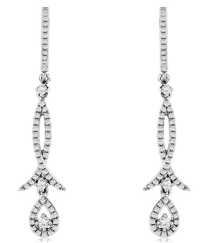 .59CT DIAMOND 14KT WHITE GOLD 3D TEAR DROP SEMI INFINITY LOVE HANGING EARRINGS