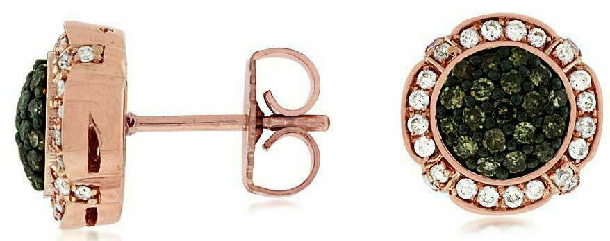 .59CT WHITE & CHOCOLATE FANCY DIAMOND 14K ROSE GOLD CLUSTER FLOWER STUD EARRINGS