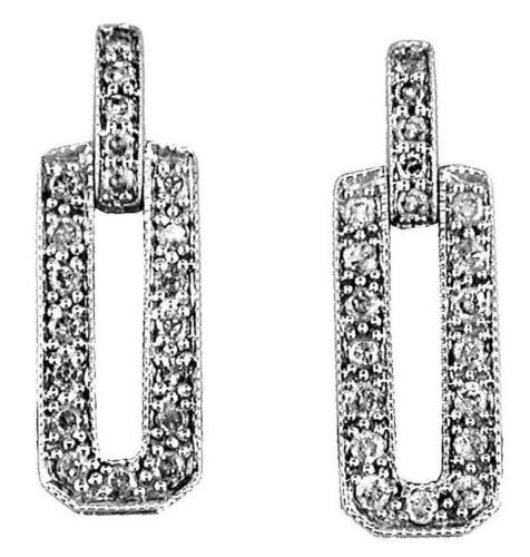 14KT WHITE GOLD HANGING EARRINGS. 3D CLASSIC RECTANGULAR LINK FILIGREE DESIGN. ROUND DIAMONDS ARE F/G COLOR, VSSI CLARITY .50 CARATS. WRITTEN APPRAISAL AVAILABLE. COMES IN A PRESENTABLE GIFT BOX.