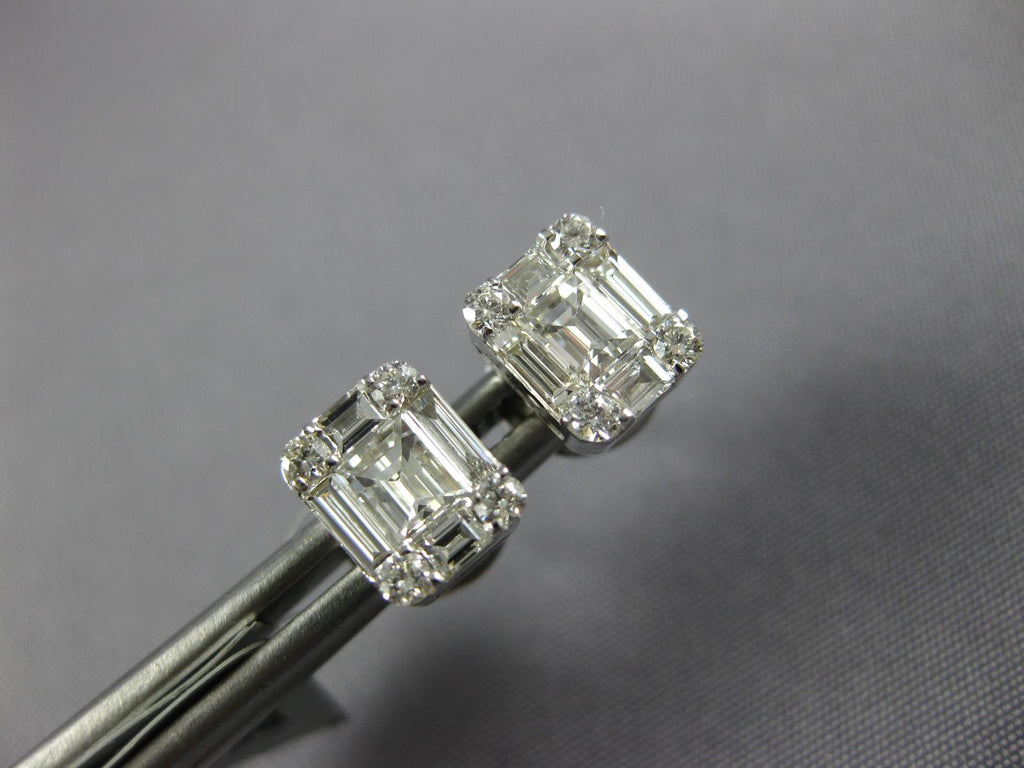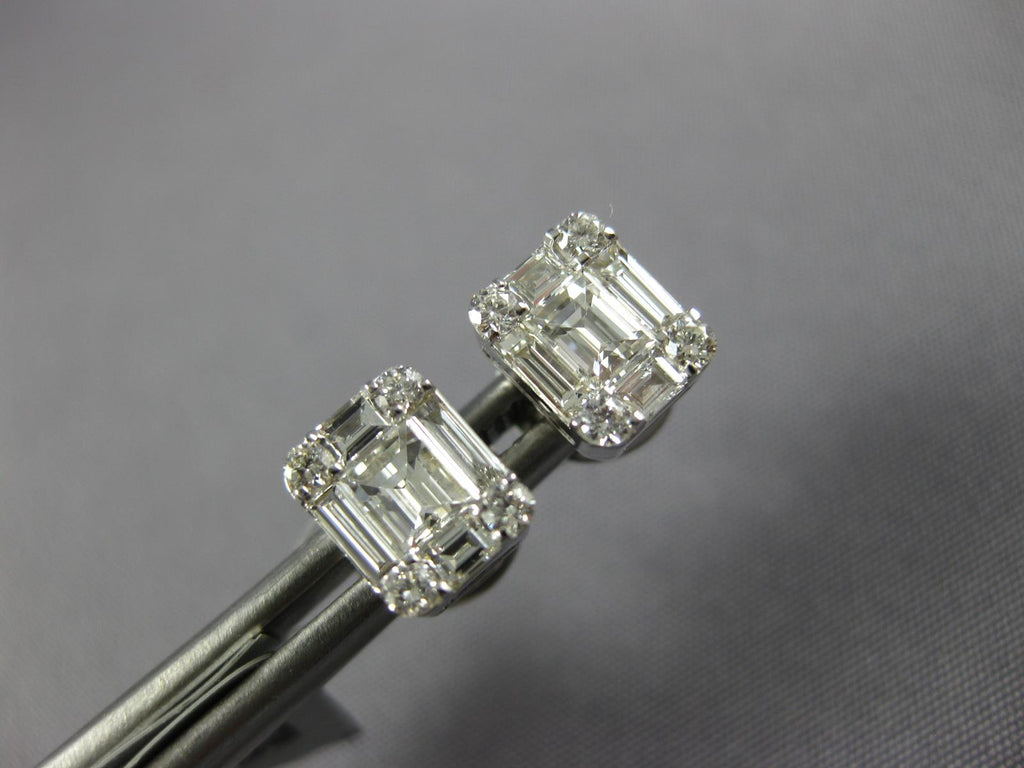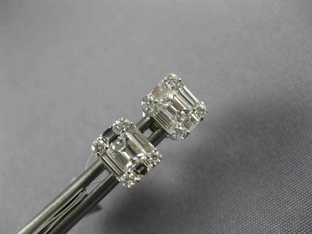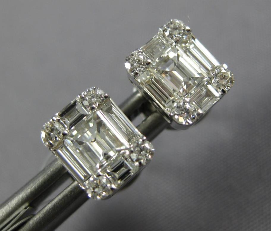 .65CT DIAMOND 18KT WHITE GOLD 3D ROUND & BAGUETTE SQUARE INVISIBLE STUD EARRINGS