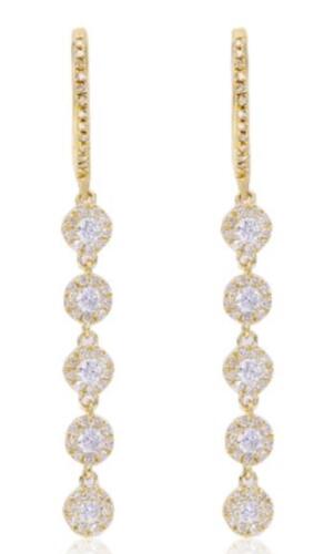 .60CT DIAMOND 14KT YELLOW GOLD CLASSIC MULTI FLOWER CHANDELIER HANGING EARRINGS