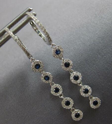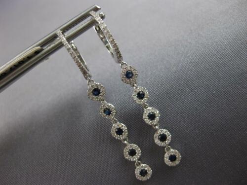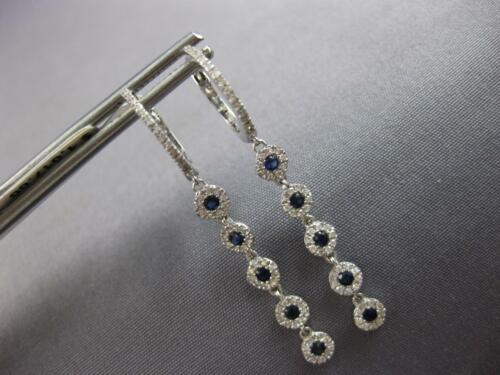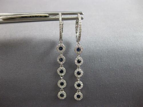 .60CT DIAMOND & AAA SAPPHIRE 14K WHITE GOLD MULTI FLOWER HUGGIE HANGING EARRINGS