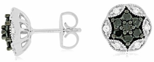 14KT WHITE GOLD STUD EARRINGS. 3D STAR OF DAVID FLOWER CLUSTER DESIGN. WHITE DIAMONDS ARE F/G COLOR, VSSI CLARITY .16 CARATS. BLACK DIAMONDS ARE .45 CARATS. WRITTEN APPRAISAL AVAILABLE. COMES IN A PRESENTABLE GIFT BOX.