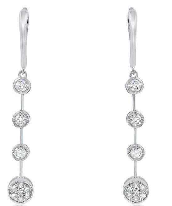 .62CT DIAMOND 18KT WHITE GOLD 3D CLUSTER JOURNEY LEVERBACK HANGING EARRINGS