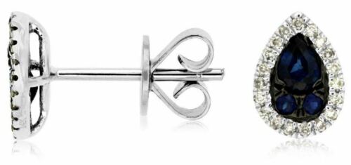 14KT WHITE GOLD STUD EARRINGS. 3D CLUSTER DESIGN. ROUND DIAMONDS ARE F/G COLOR, VSSI CLARITY .12 CARATS. AAA ROUND AND PEAR SHAPE SAPPHIRES ARE .50 CARATS. WRITTEN APPRAISAL AVAILABLE. COMES IN A PRESENTABLE GIFT BOX.