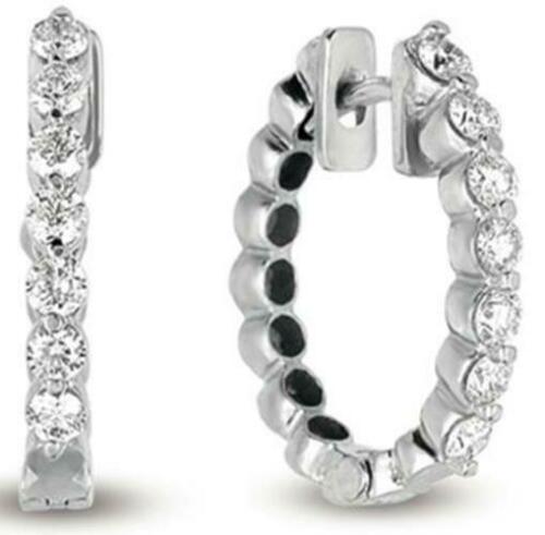 .63CT DIAMOND 14KT WHITE GOLD 7 STONE SHARED PRONG HUGGIE HOOP HANGING EARRINGS