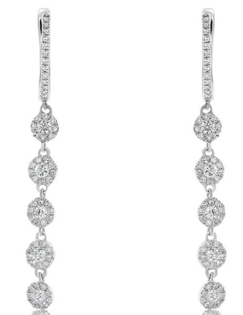 .65CT DIAMOND 14K WHITE GOLD MULTI FLOWER BY THE YARD LEVERBACK HANGING EARRINGS