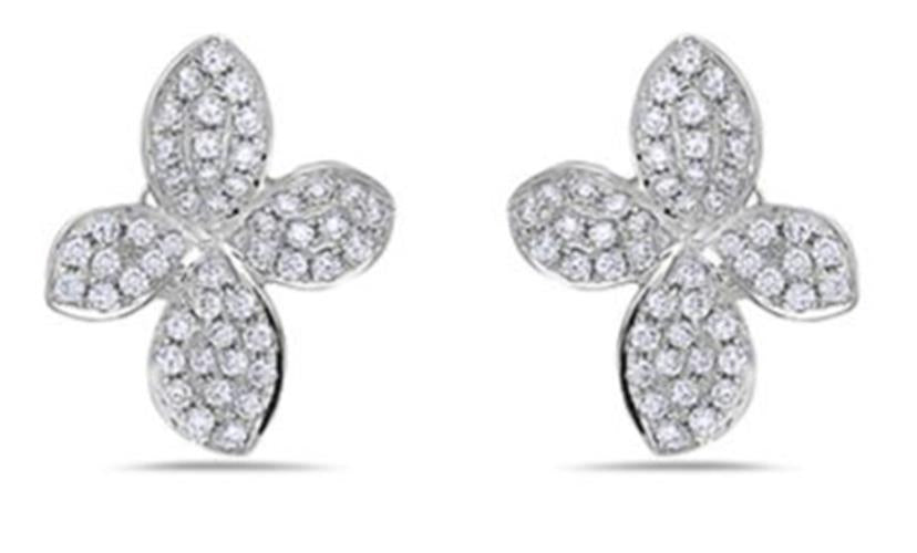 .65CT DIAMOND 18KT WHITE GOLD 3D 4 LEAF CLOVER FLOWER BUTTERFLY STUD EARRINGS