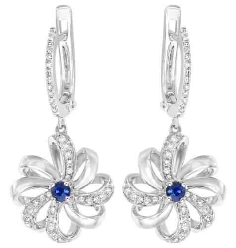 .65CT DIAMOND & AAA SAPPHIRE 14K WHITE GOLD 3D FLOWER LEVERBACK HANGING EARRINGS