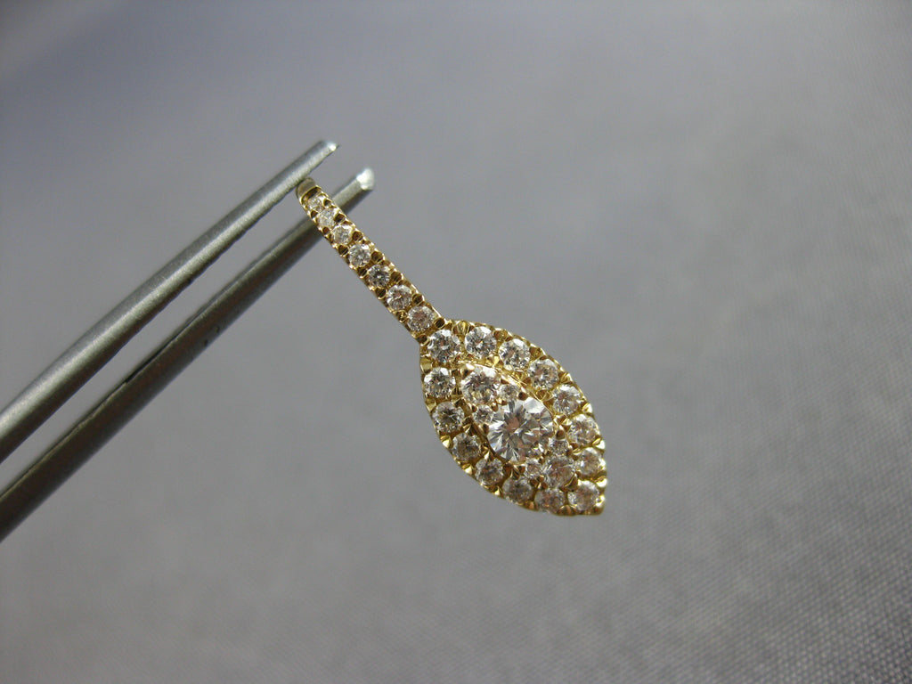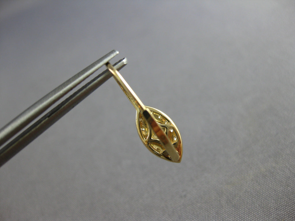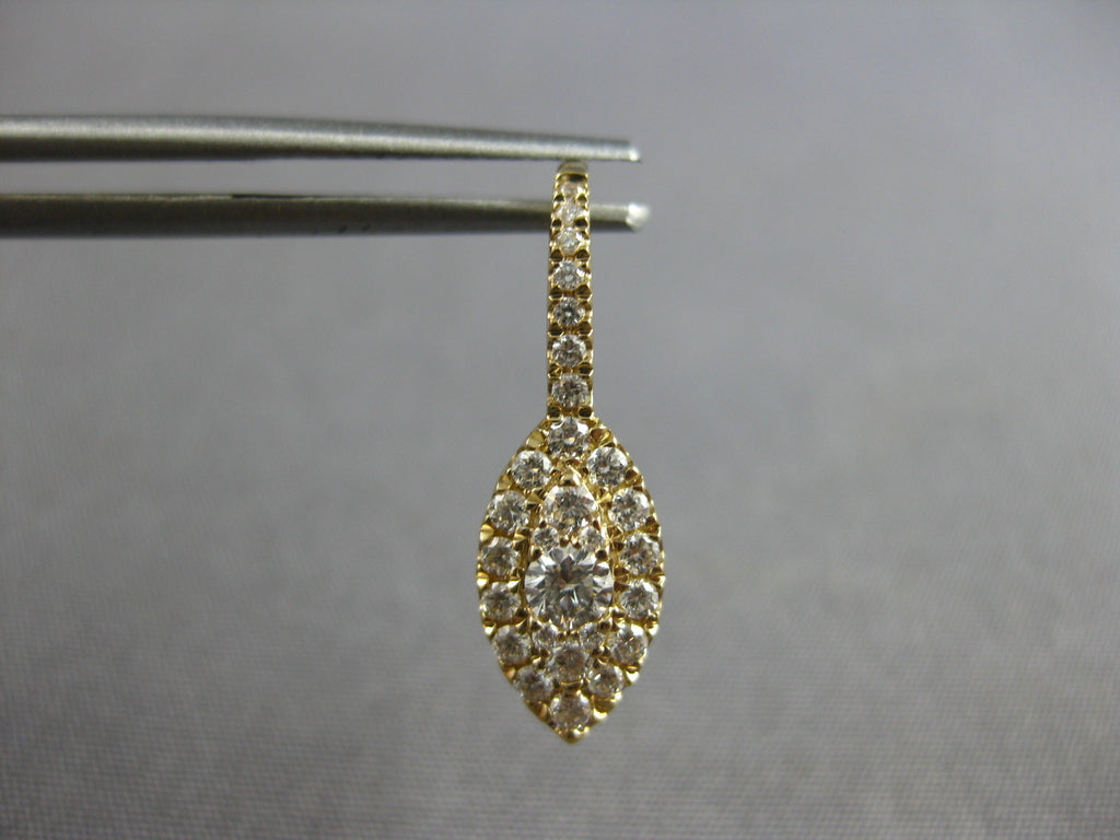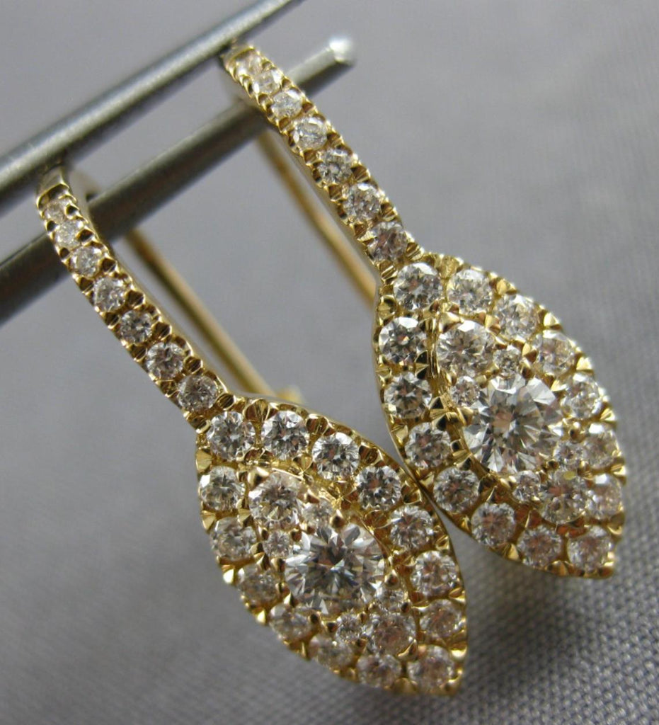 14KT YELLOW GOLD LEVERBACK HANGING EARRINGS. 3D MARQUISE SHAPE HALO DESIGN. DIAMONDS ARE F/G COLOR, VVS-VS CLARITY .66 CARATS. MEASURES 20mm X 6.3mm. WRITTEN APPRAISAL AVAILABLE. COMES IN A PRESENTABLE GIFT BOX.