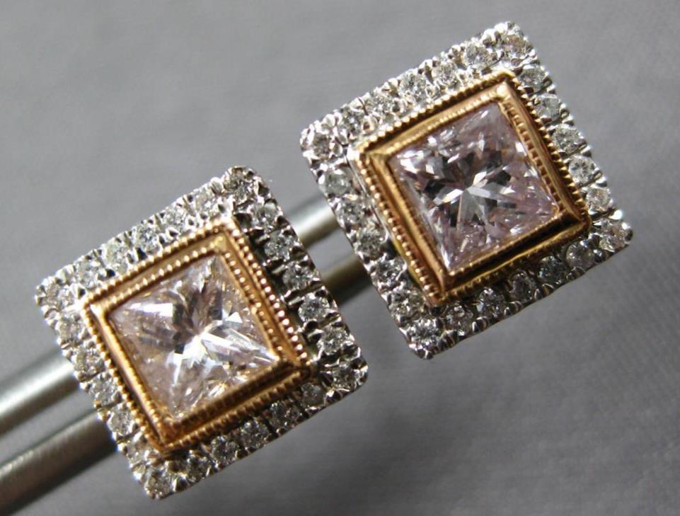 .66CT WHITE & PINK DIAMOND 18KT ROSE GOLD 3D PRINCESS & ROUND HALO STUD EARRINGS
