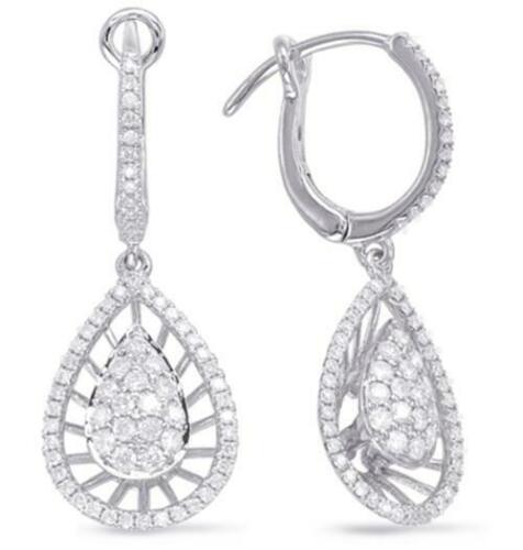 .67CT DIAMOND 14KT WHITE GOLD CLUSTER TEAR DROP OPEN FILIGREE HANGING EARRINGS
