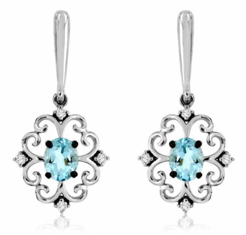14KT WHITE GOLD LOVE HANGING EARRINGS. 3D MULTI HEART OVAL DESIGN. DIAMONDS ARE F/G COLOR, VSSI CLARITY .08 CARATS. AAA AQUAMARINES ARE .60 CARATS. WRITTEN APPRAISAL AVAILABLE. COMES IN A PRESENTABLE GIFT BOX.