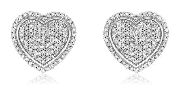 .66CT DIAMOND 14KT WHITE GOLD 3D CLASSIC PAVE HEART SHAPE LOVE STUD EARRINGS