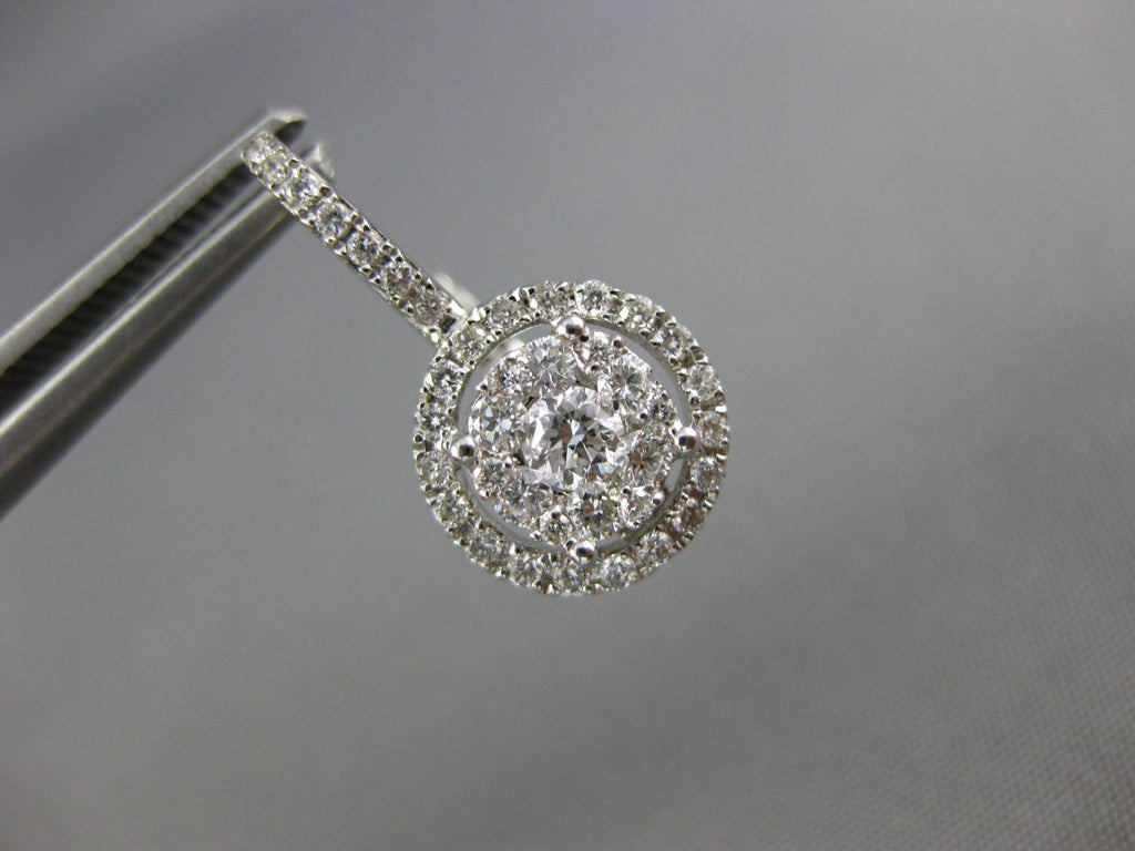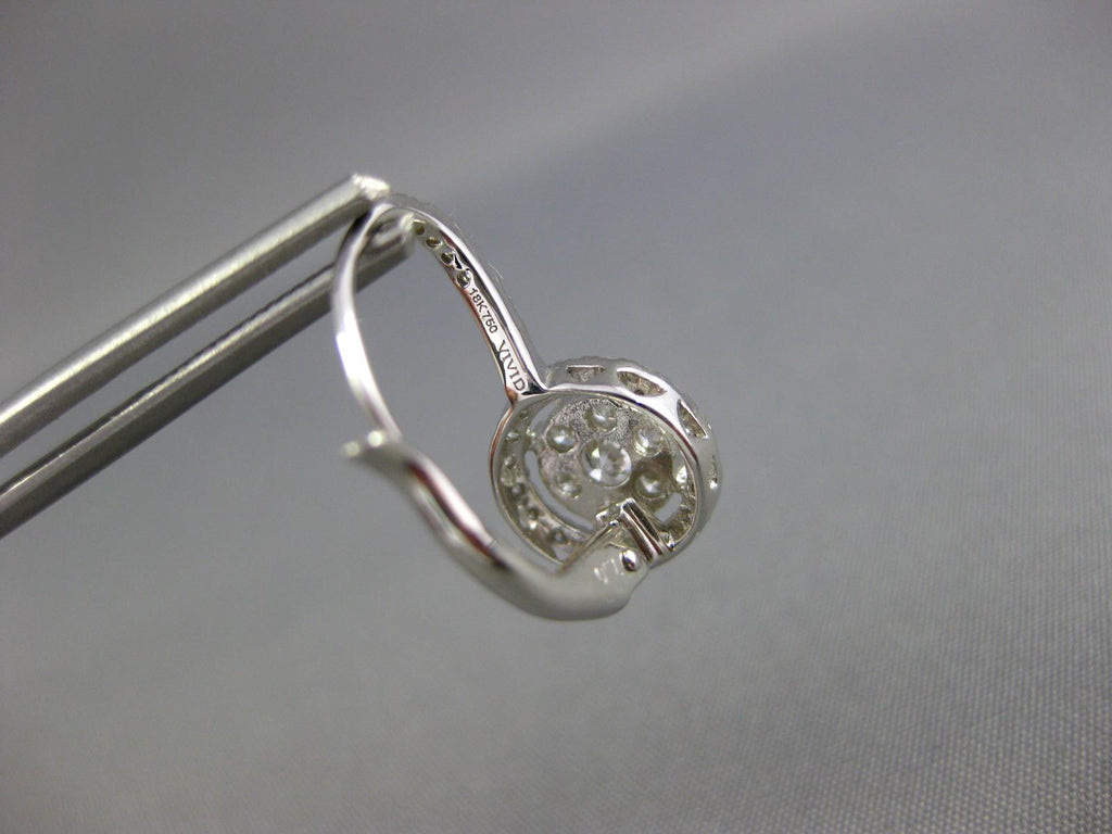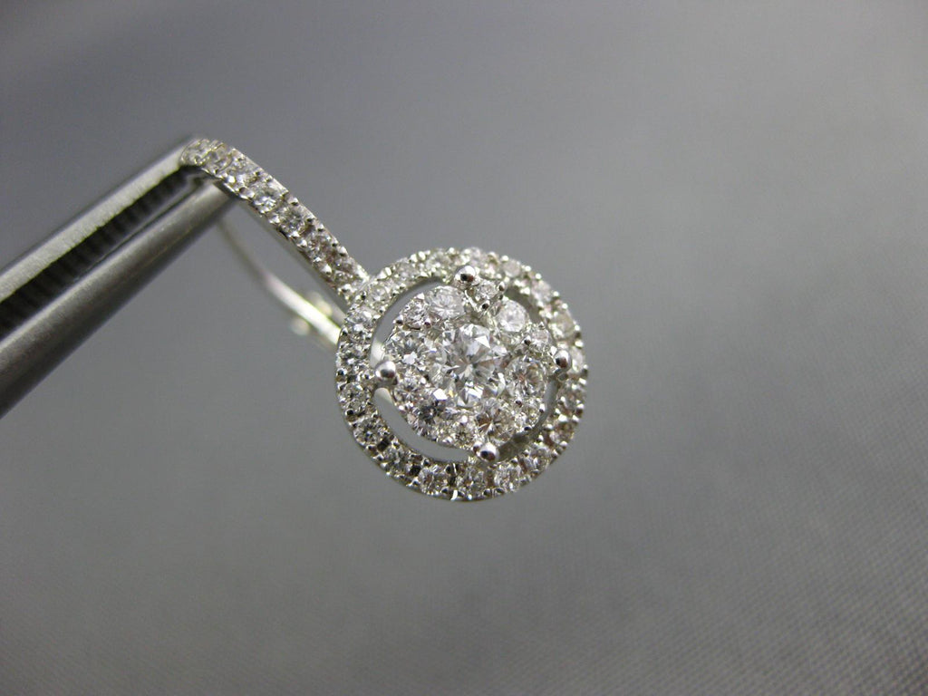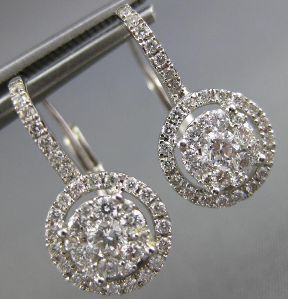 .86CT DIAMOND 18KT WHITE GOLD 3D CLUSTER HALO FLOWER LEVERBACK HANGING EARRINGS