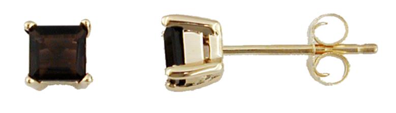 14KT YELLOW GOLD STUD EARRINGS. 3D CLASSIC SQUARE DESIGN. AAA PRINCESS CUT SMOKY TOPAZ ARE .70 CARATS. WRITTEN APPRAISAL AVAILABLE. COMES IN A PRESENTABLE GIFT BOX.
