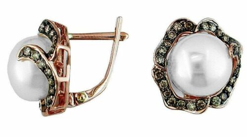 14KT YELLOW GOLD LEVERBACK EARRINGS. 3D CLASSIC DESIGN. CHOCOLATE FANCY DIAMONDS ARE .70 CARATS. FEATURES AAA SOUTH SEA PEARL. WRITTEN APPRAISAL AVAILABLE. COMES IN A PRESENTABLE GIFT BOX.