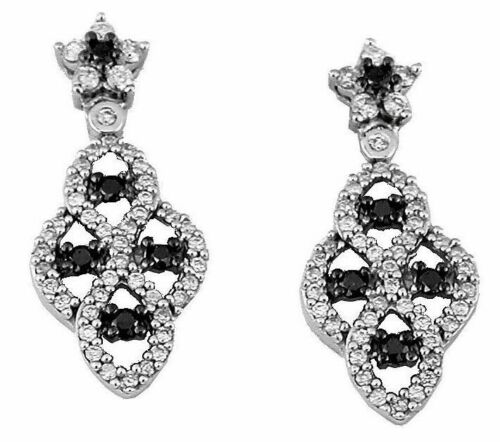 14KT WHITE GOLD LOVE HANGING EARRINGS. 3D FLOWER INFINITY DESIGN. WHITE DIAMONDS ARE F/G COLOR, VSSI CLARITY .50 CARATS. BLACK DIAMONDS ARE .22 CARATS. WRITTEN APPRAISAL AVAILABLE. COMES IN A PRESENTABLE GIFT BOX.
