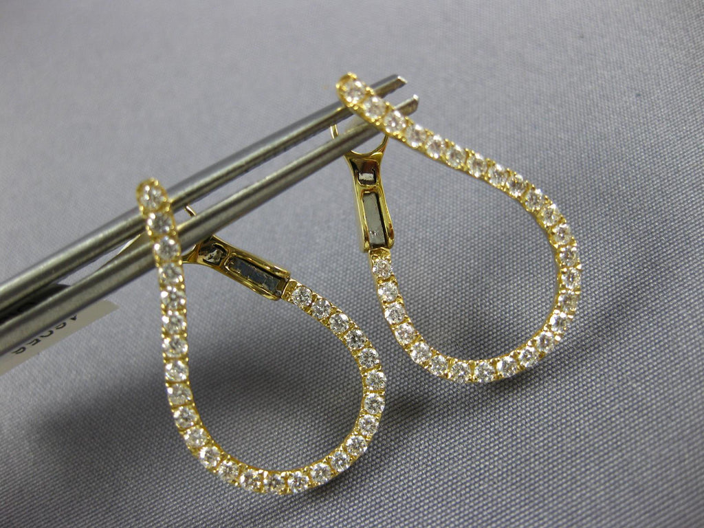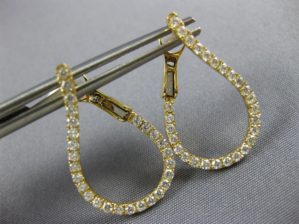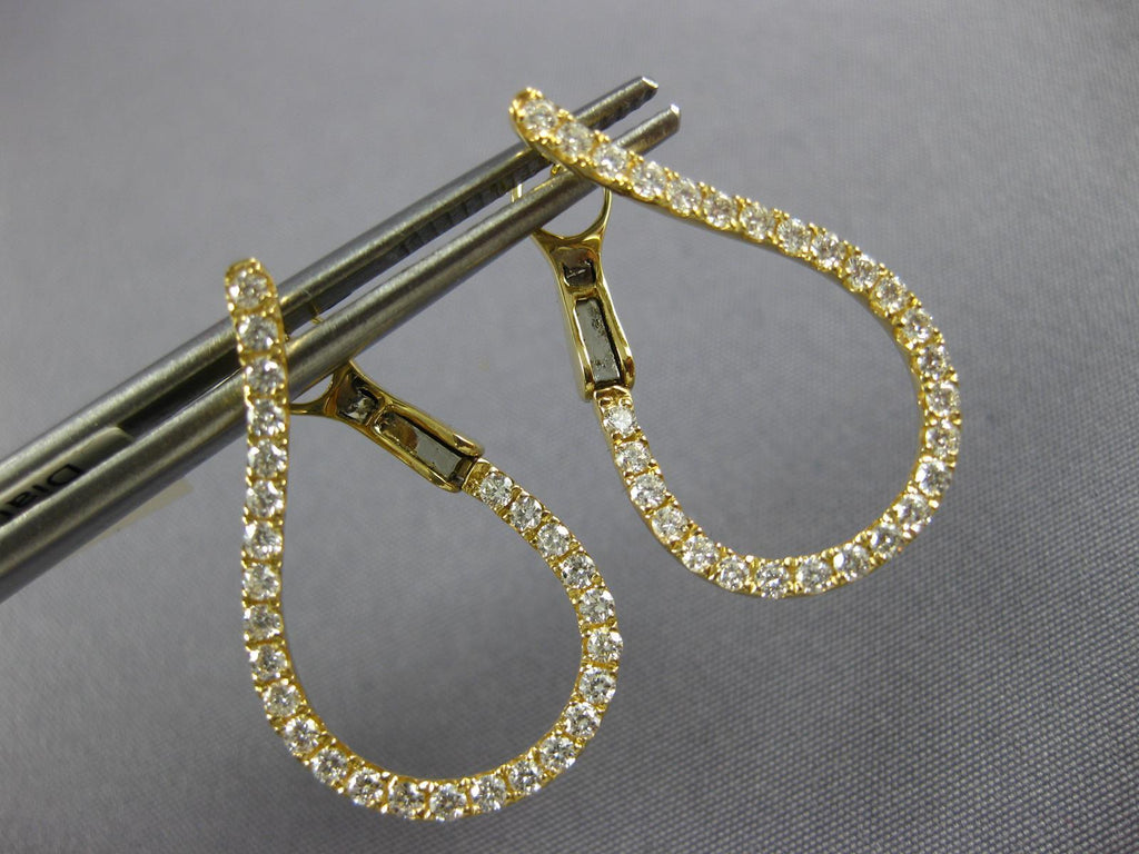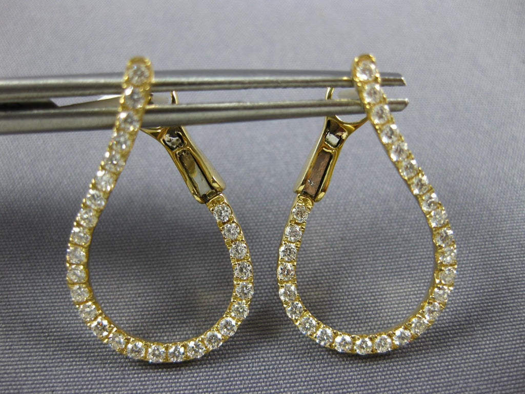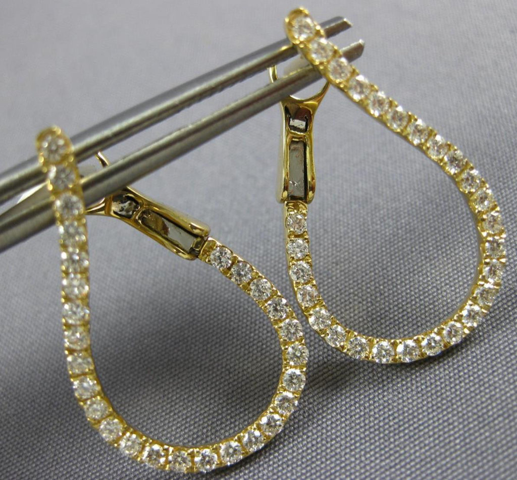 .78CT DIAMOND 18KT YELLOW GOLD SIDEWAYS HOOP TEAR DROP CLIP ON HANGING EARRINGS