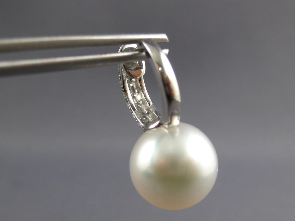 .78CT DIAMOND & AAA SOUTH SEA PEARL 18KT WHITE GOLD 3D HUGGIE HANGING EARRINGS
