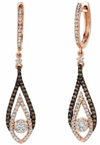 .78CT WHITE & CHOCOLATE FANCY DIAMOND 14K ROSE GOLD TEAR DROP HANGING EARRINGS