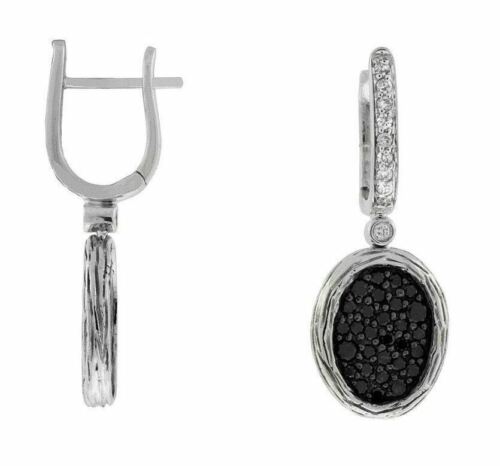.80CT WHITE & BLACK DIAMOND 14KT WHITE GOLD 3D OVAL LEVERBACK HANGING EARRINGS