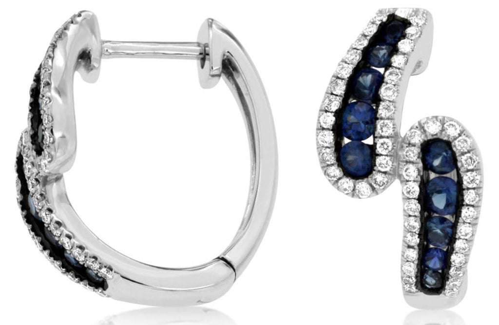 .81CT DIAMOND & AAA SAPPHIRE 14KT WHITE GOLD CRISS CROSS HUGGIE HANGING EARRINGS