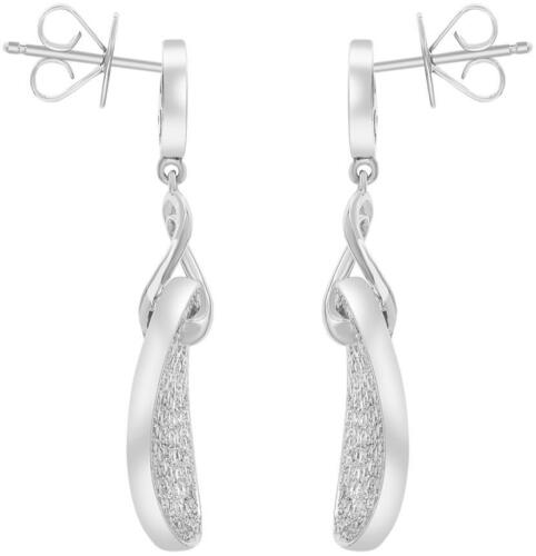 .82CT DIAMOND 14KT WHITE GOLD 3D MATTE & SHINY LOVE KNOT DROP HANGING EARRINGS