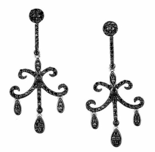 .86CT BLACK DIAMOND 14KT WHITE GOLD 3D LEUR DE LIS CHANDELIER HANGING EARRINGS