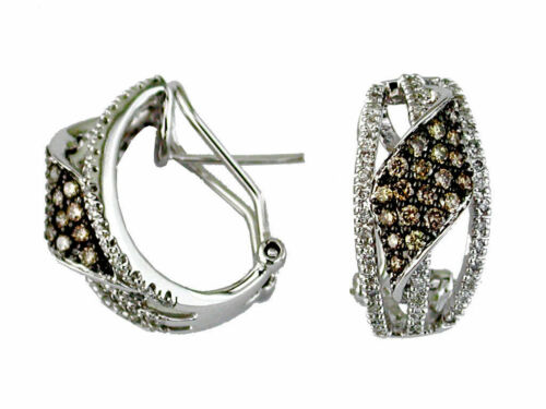 14KT WHITE GOLD CLIP ON EARRINGS. 3D PAVE THREE ROW LEAF DESIGN. WHITE DIAMONDS ARE F/G COLOR, VSSI CLARITY .31 CARATS. MOCHA DIAMONDS ARE .55 CARATS. WRITTEN APPRAISAL AVAILABLE. COMES IN A PRESENTABLE GIFT BOX.