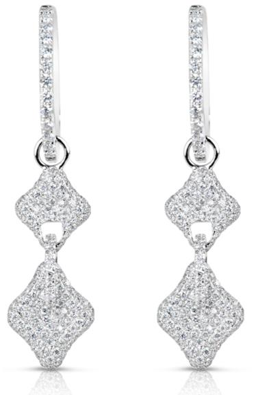 .88CT DIAMOND 14KT WHITE GOLD 3D DOUBLE 4 LEAF CLOVER LOVE KNOT HANGING EARRINGS