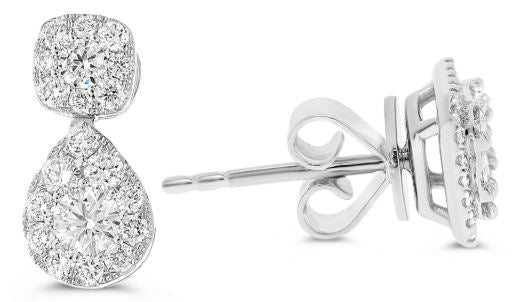.98CT DIAMOND 14KT WHITE GOLD ROUND SQUARE & PEAR SHAPE JACKET HANGING EARRINGS