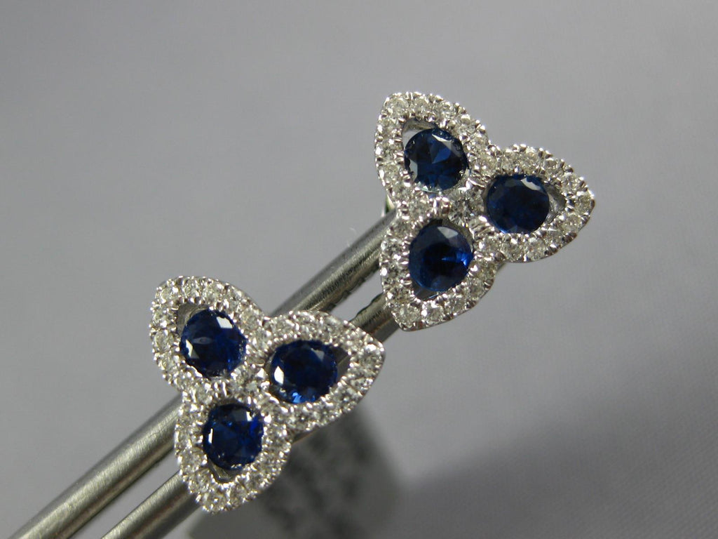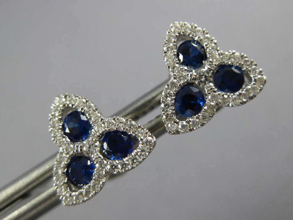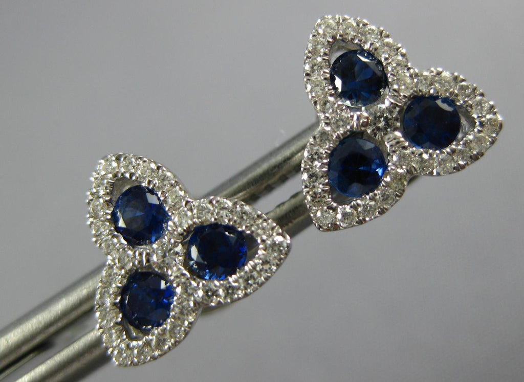 .68CT DIAMOND & AAA SAPPHIRE 18KT WHITE GOLD TRILLION FLOWER STAR STUD EARRINGS