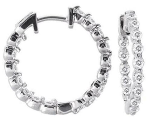 .90CT DIAMOND 14K WHITE GOLD SHARE PRONG INSIDE OUT HOOP HUGGIE HANGING EARRINGS