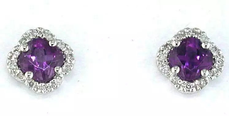 .90CT DIAMOND & AAA AMETHYST 14KT WHITE GOLD 4 LEAF CLOVER FLOWER STUD EARRINGS