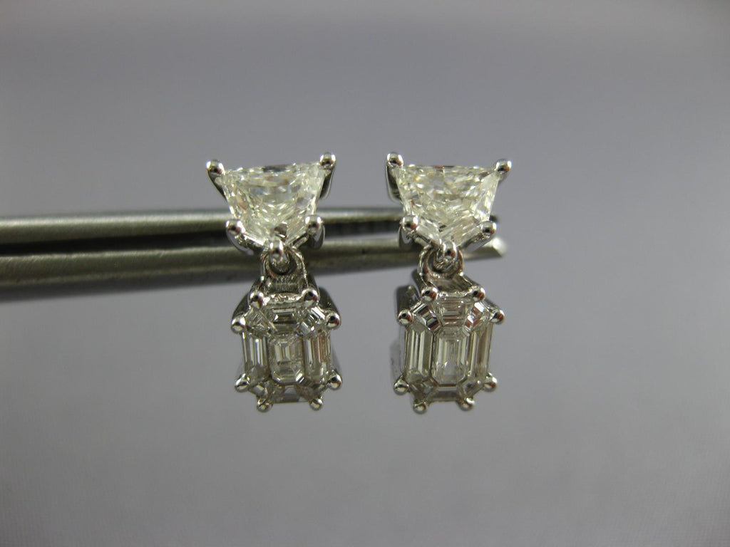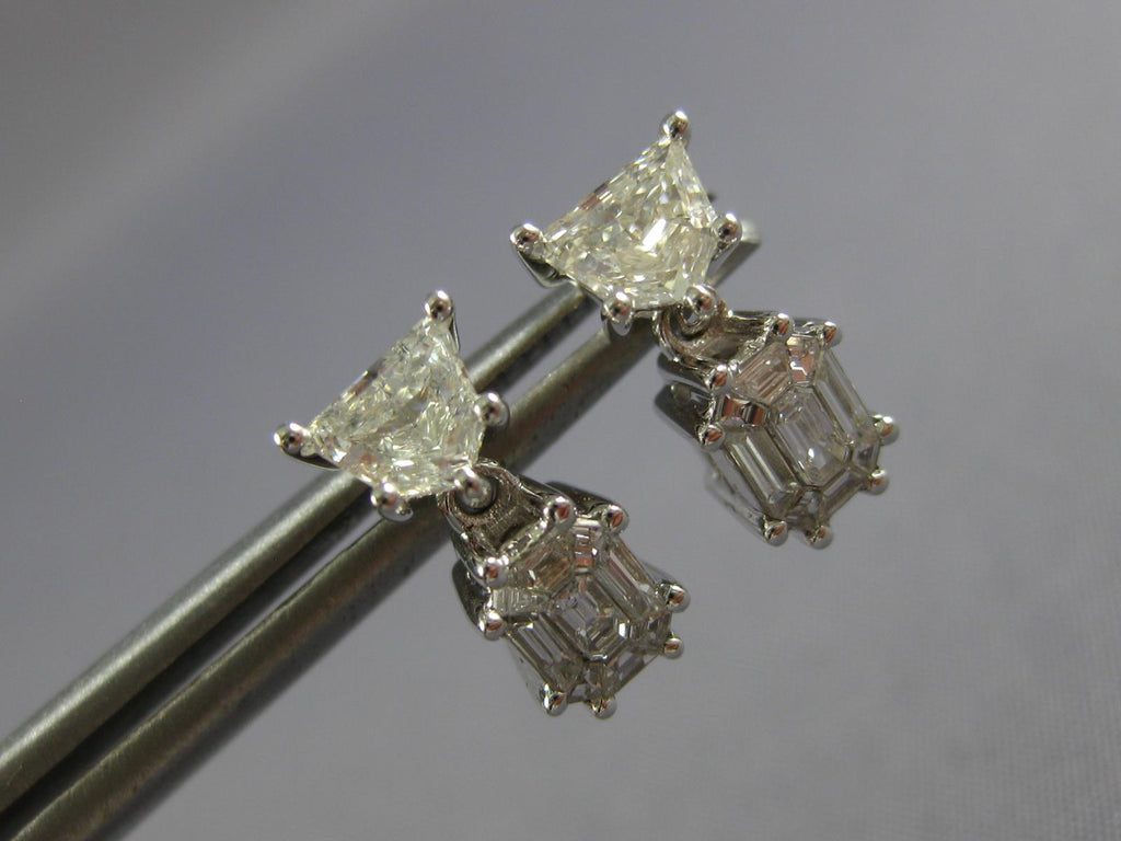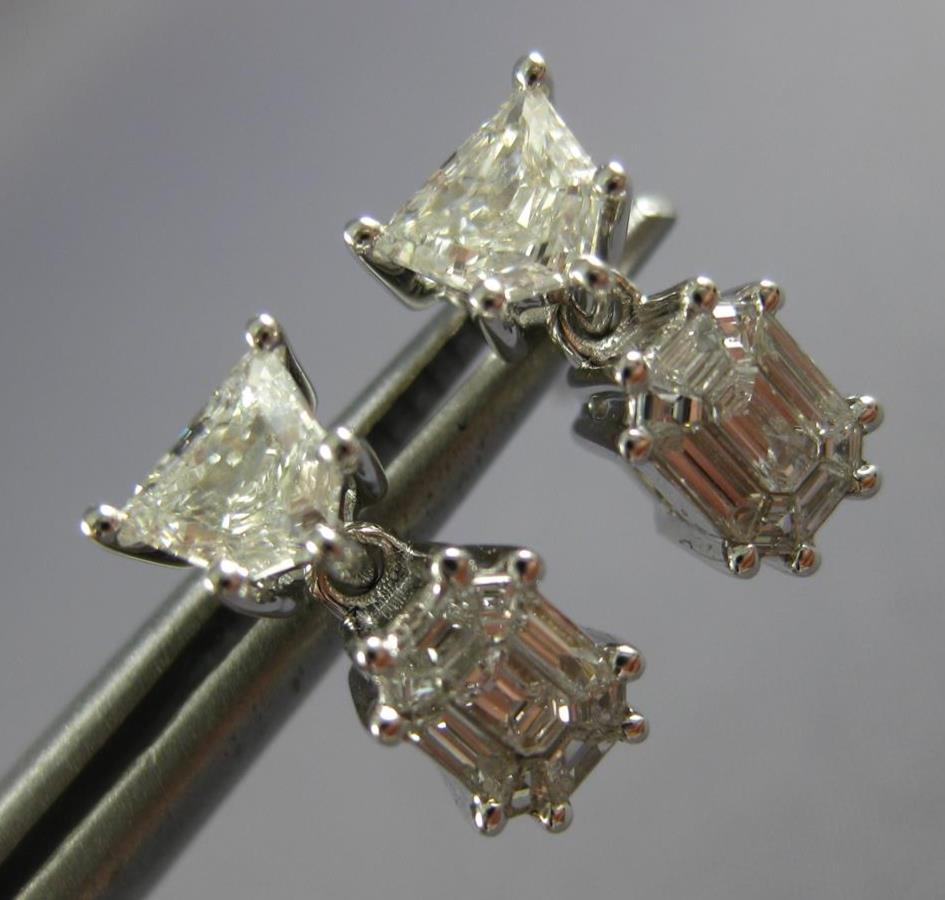 .92CT DIAMOND 18KT WHITE GOLD 3D KITE CUT & BAGUETTE INVISIBLE HANGING EARRINGS
