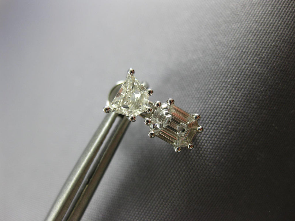 18KT WHITE GOLD HANGING EARRINGS. 3D INVISIBLE DESIGN. KITE CUT AND BAGUETTE DIAMONDS ARE F/G COLOR, VSSI CLARITY .92 CARATS. MEASURES 11mm X 4mm. WRITTEN APPRAISAL AVAILABLE. COMES IN A PRESENTABLE GIFT BOX.