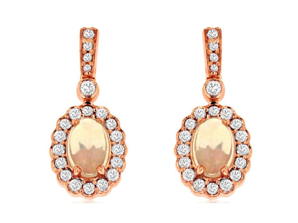 .93CT DIAMOND & AAA OPAL 14KT ROSE GOLD 3D OVAL & ROUND FLOWER HANGING EARRINGS