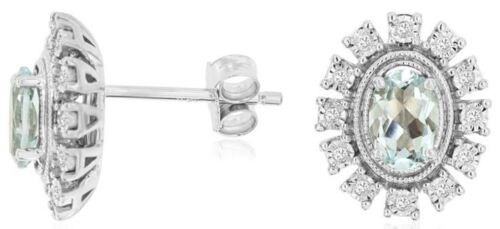 14KT WHITE GOLD STUD EARRINGS. 3D FLOWER FILIGREE DESIGN. ROUND DIAMONDS ARE F/G COLOR, VSSI CLARITY .10 CARATS. AAA EXTRA FACETED OVAL AQUAMARINE IS .84 CARATS. WRITTEN APPRAISAL AVAILABLE. COMES IN A PRESENTABLE GIFT BOX.