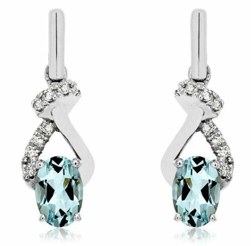 14KT GOLD HANGING EARRINGS. 3D CLASSIC DESIGN. ROUND DIAMONDS ARE F/G COLOR, VSSI CLARITY .10 CARATS. AAA OVAL AQUAMARINES ARE .85 CARATS. WRITTEN APPRAISAL AVAILABLE. COMES IN A PRESENTABLE GIFT BOX.