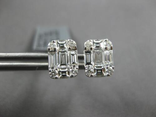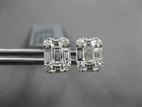 18KT WHITE GOLD STUD EARRINGS. 3D CLASSIC SQUARE INVISIBLE RECTANGULAR DESIGN. ROUND AND BAGUETTE DIAMONDS ARE F/G COLOR, VVS-VS CLARITY .97 CARATS. MEASURES 8mm X 6mm. WRITTEN APPRAISAL AVAILABLE. COMES IN A PRESENTABLE GIFT BOX.